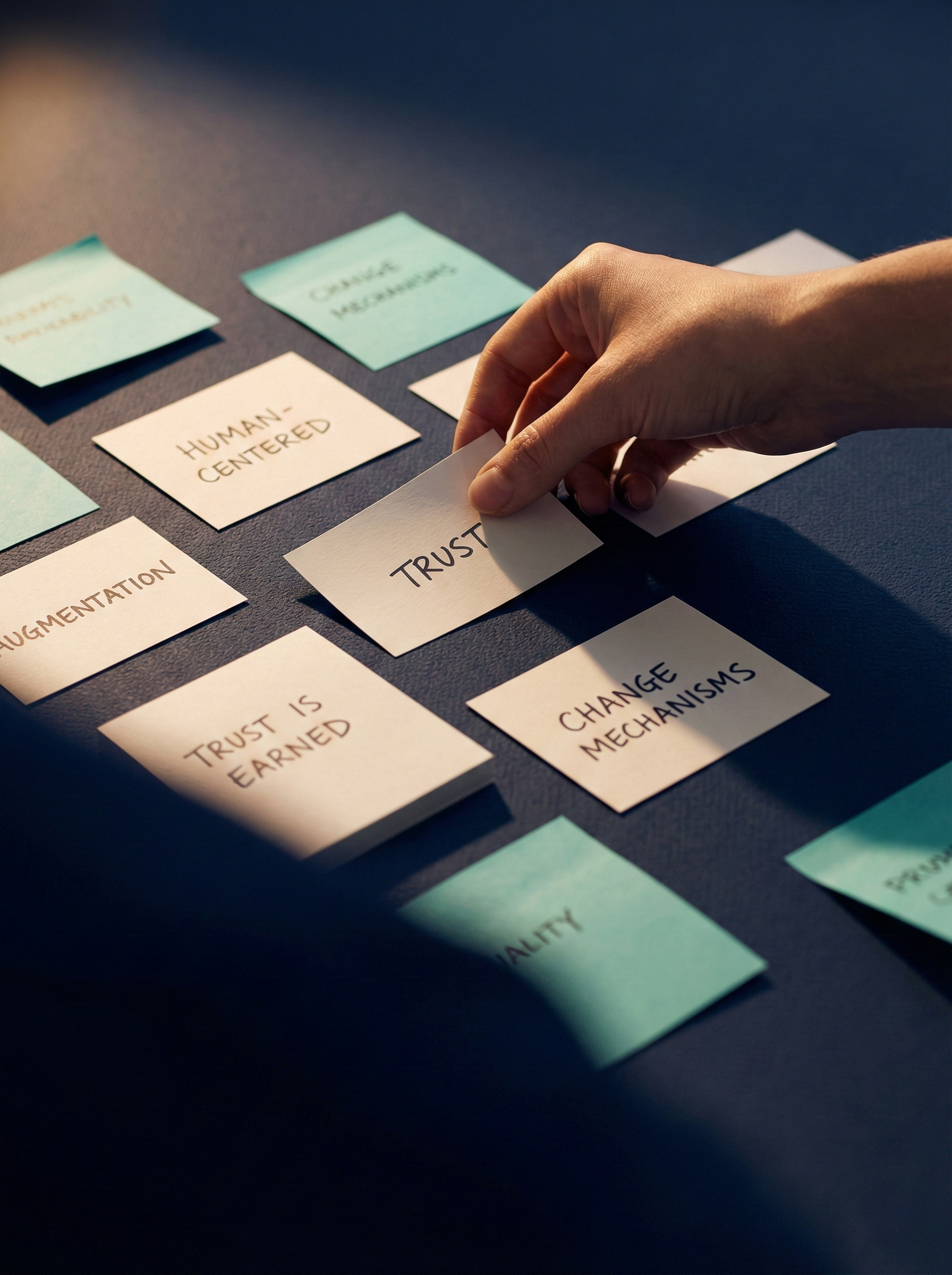We work with you wherever you are on the journey. We build solutions, train your teams, and do the hard work of change management and organizational redesign that moves an organization from pilots to performance.